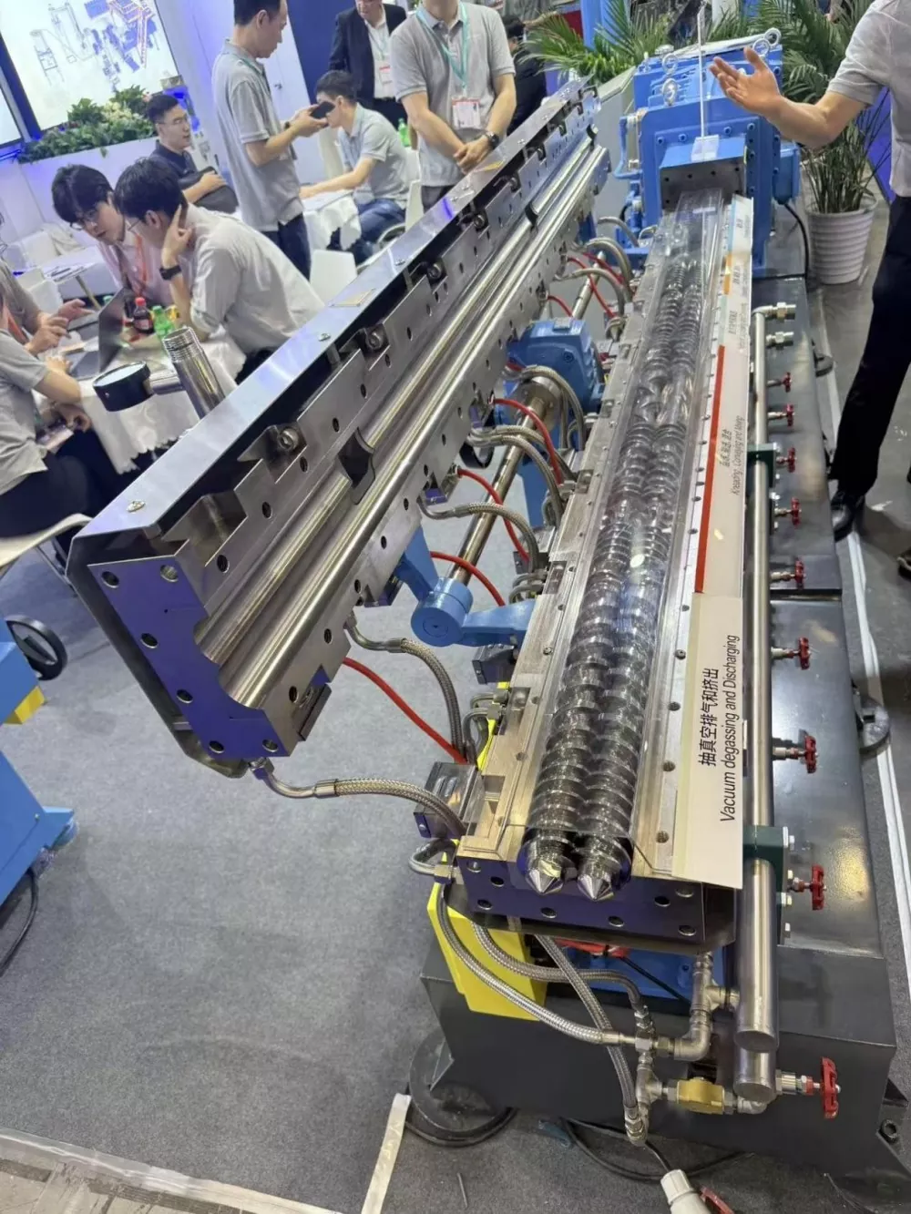 Sa eksibisyon, angZhoushan Nanhaiyabooth ay abala sa mga bisita. Ang mga star na produkto na itinampok sa eksibisyon, tulad ng dual-alloy screw at barrel at ang nitrided screw at barrel, ay nakakuha ng malawakang atensyon sa mga parameter ng pagganap na higit sa mga pamantayan ng industriya. Lahat ng mga produkto ng Nanhaiya ay ginawa mula sa 38CrMoAl alloy steel at ginawa sa pamamagitan ng maraming proseso, kabilang ang pagsusubo at tempering, characterization, at precision machining. Sa partikular, ang barrel discharge port, isang vulnerable section, ay nagtatampok ng makabagong, full-circle carbide spray coating, na nakakamit ng internal hardness na 62HRC, isang makabuluhang pagpapabuti sa average ng industriya na 58HRC.