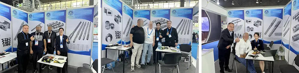 Mula Setyembre 21 hanggang 23, 2025, ipinakita ng Zhoushan Nanhaiya Plastic Machinery Co., Ltd. ang pinaliit nitong mga modelo ng screw at barrel sa booth nito. Sa nangungunang teknolohiyang lumalaban sa pagsusuot nito at mga customized na solusyon, ang mga produkto ay naging highlight ng eksibisyon, na umaakit ng maraming mamimili mula sa mga bansa sa Central Asia tulad ng Uzbekistan at Kazakhstan.